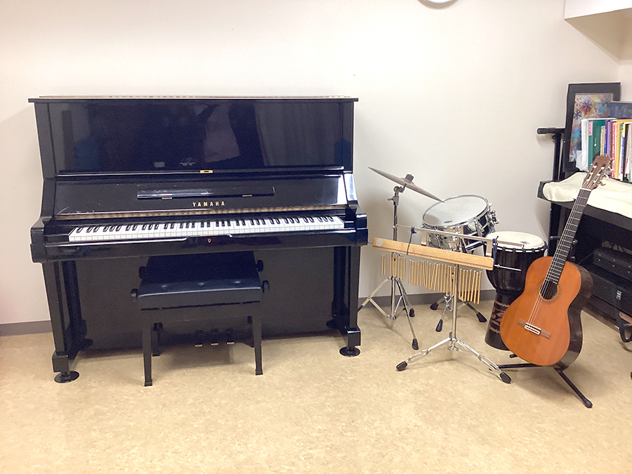 その他、保育や余暇活動を利用した音楽活動や院内コンサート、行事でのスタッフを交えたバンド演奏等、様々な場面で「生の音・音楽」を提供しています。